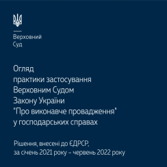 Пропонуємо вашій увазі практики застосування Верховним Судом Закону України "Про виконавче провадження" у господарських справах (за січень 2021 – червень 2022 року). Матеріал напрацьовано управлінням забезпечення роботи судової палати для розгляду справ про банкрутство КГС ВС. Огляд містить правові висновки Верховного Суду, які сприятимуть забезпеченню сталості та єдності судової практики у питаннях щодо: - оскарження рішень, дій або бездіяльності державного виконавця чи іншої посадової особи органу державної виконавчої служби або приватного виконавця; - накладення (зняття) арешту на(з) майно боржника; - заміні сторони виконавчого провадження; - інших питань, які виникають під час застосування Закону України "Про виконавче провадження". Правові висновки стануть у пригоді суддям, адвокатам, юристам, ...