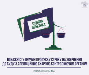 КАС ВС зазначив що, суд відмовляє у відкритті апеляційного провадження за апеляційною скаргою, поданою після закінчення строків, установлених статтею 295 КАС України, та якщо суд за заявою особи, яка її подала, не знайде підстав для поновлення строку, про що постановляється ухвала. КАС України передбачає можливість поновлення пропущеного процесуального строку лише у разі його пропуску з поважних причин. Причини пропуску строку є поважними, якщо обставини які зумовили такі причини є об`єктивно непереборними, не залежать від волевиявлення особи, що оскаржує судове рішення, та пов`язані з дійсними істотними перешкодами чи труднощами для своєчасного вчинення процесуальних дій та підтверджені належними доказами. Виходячи з принципу "належного ...