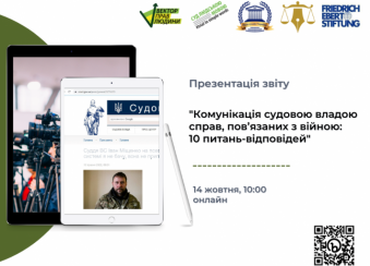 14 жовтня 2022 року в Києві відбулася презентація та обговорення результатів досліджень щодо висвітлення судових справ, пов’язаних з війною РФ проти України, проведених ГО "Вектор прав людини" у співпраці з Радою суддів України, Пересслужбою Ради суддів України та у партнерстві з Представництвом Фонду ім. Фрідріха Еберта в Україні. До обговорення були запрошені судді, працівники апарату судів, правники, журналісти, представники міжнародних та громадських організацій, які зацікавлені в об'єктивному та відкритому висвітлені справ, що пов'язані з воєнними злочинами, які здійснюються солдатами армії-агресорки в Україні. Звертаючись до учасників заходу, Голова Ради суддів України Богдан Моніч подякував громадській організації "Вектор прав людини" і її директорці Валерії ...