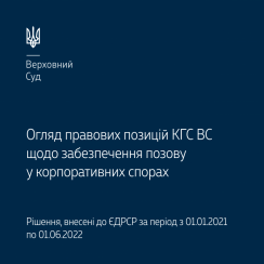 Пропонуємо до вашої уваги огляд правових позицій Касаційного господарського суду у складі Верховного Суду щодо забезпечення позову в корпоративних спорах (за період із 1 січня 2021 року по 1 червня 2022 року). Матеріал напрацьовано управлінням забезпечення роботи секретаря та суддів судової палати для розгляду справ щодо корпоративних спорів, корпоративних прав та цінних паперів КГС ВС. Огляд містить правові висновки КГС ВС, які сприятимуть сталості та єдності судової практики у справах щодо забезпечення позову в корпоративних спорах, зокрема, шляхом:заборони вчинення реєстраційних дій;зупинення дії наказу Мін’юсту;зупинення дії рішення загальних зборів юридичної особи;заборони загальним зборам учасників (членів, акціонерів) юридичної особи ухвалювати рішення;заборони відчуження частки у ...