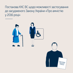 Захисник особи, засудженої за порушення правил безпеки дорожнього руху під час керування транспортним засобом, що спричинило смерть потерпілого (ч. 2 ст. 286 КК України), оскаржив до Касаційного кримінального суду у складі Верховного Суду вирок апеляційного суду. Скаржник просив, зокрема, змінити цей вирок та звільнити особу від основного та додаткового покарання на підставі п. «є» ст. 1 Закону України «Про амністію у 2016 році». ККС ВС частково задовольнив касаційну скаргу захисника та змінив вирок апеляційного суду. На підставі п. «є» ст. 1 Закону України «Про амністію у 2016 році» звільнив особу від відбування призначеного їй основного покарання. У решті вирок апеляційного суду ...