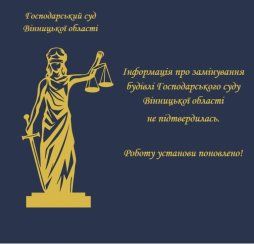 Детальніше: Робота Господарського суду Вінницької області відновлена