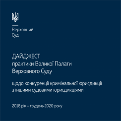 Тематичний дайджест судової практики Великої Палати Верховного Суду щодо конкуренції кримінальної юрисдикції з іншими судовими юрисдикціями з викладом систематизованих правових висновків та позицій Великої Палати покликаний сприяти полегшенню їх віднайдення, ознайомлення та використання в роботі як фахівців, так і всіх зацікавлених. У дайджесті відображено всі правові висновки Великої Палати щодо юрисдикції спорів на межі з кримінальною юрисдикцією за трирічний період – із 2018 по 2020 рік. Виклад позицій систематизовано за предметом спірних правовідносин, зокрема дайджест вміщує розділи щодо практики:внесення відомостей до ЄРДР, а також оскарження рішень і дій, учинених на стадії досудового та судового провадження;оскарження рішень і дій правоохоронних органів, що мали ...