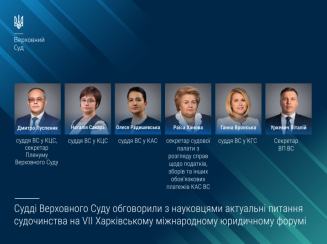 Суддя Верховного Суду у Касаційному цивільному суді, секретар Пленуму Верховного Суду Дмитро Луспеник, суддя ВС у Касаційному цивільному суді Наталія Сакара, суддя ВС у Касаційному адміністративному суді Олеся Радишевська, секретар судової палати з розгляду справ щодо податків, зборів та інших обов’язкових платежів КАС ВСРаїса Ханова, суддя ВС у Касаційному господарському суді Ганна Вронська та Секретар Великої Палати ВС Віталій Уркевич виступили з доповідями в онлайн-режимі на панельних дискусіях VII Харківського міжнародного юридичного форуму.