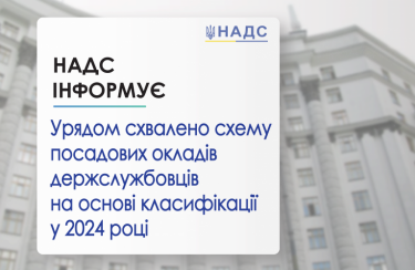 З 1 січня 2024 року діє постанова Уряду від 29 грудня 2023 р. № 1409 "Питання оплати праці державних службовців на основі класифікації посад у 2024 році", якою затверджені схема посадових окладів на посадах державної служби з урахуванням сімей і рівнів посад, юрисдикції та типів державних органів у 2024 році та перелік типових посад державної служби в межах рівнів посад.