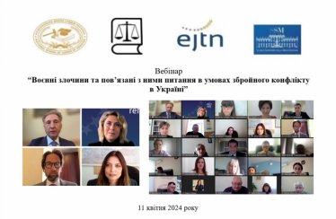 11 квітня 2024 року Національна школа суддів України спільно з Вищою школою магістратури (Італійська Республіка) та Національним інститутом юстиції (Республіка Болгарія) за підтримки Європейської мережі суддівської освіти провели вебінар для українських суддів із метою підвищення рівня кваліфікації "Воєнні злочини та пов’язані з ними питання в умовах збройного конфлікту в Україні".