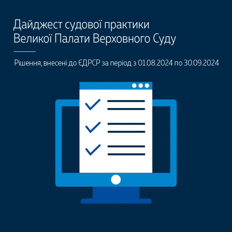 Пропонуємо до вашої уваги дайджест судової практики Великої Палати Верховного Суду (рішення, внесені до ЄДРСР за серпень – вересень 2024 року) – https://supreme.court.gov.ua/userfiles/media/new_folder_for_uploads/supreme/ogliady/Daigest_08_09_2024.pdf