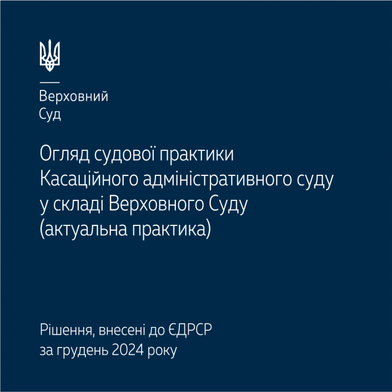 Пропонуємо ознайомитися з оглядом актуальної судової практики Касаційного адміністративного суду у складі Верховного Суду за грудень 2024 року – https://court.gov.ua/storage/portal/supreme/ogliady/Oglyad_KAS_12_2024.pdf.