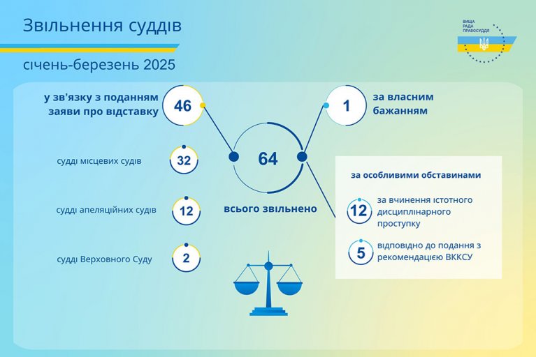 Упродовж січня - березня 2025 року Вища рада правосуддя ухвалила рішення щодо звільнення 64 суддів.