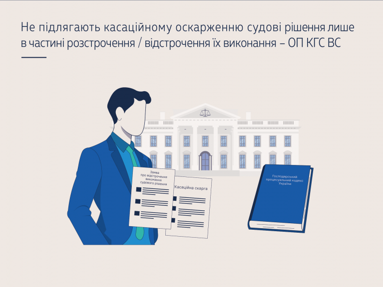 ОП КГС ВС зазначила, що наведене виключає можливість касаційного перегляду рішення місцевого господарського суду та постанови суду апеляційної інстанції в частині відмови у задоволенні заяви про відстрочення виконання рішення, оскільки в цій частині судові рішення не підлягають касаційному оскарженню.