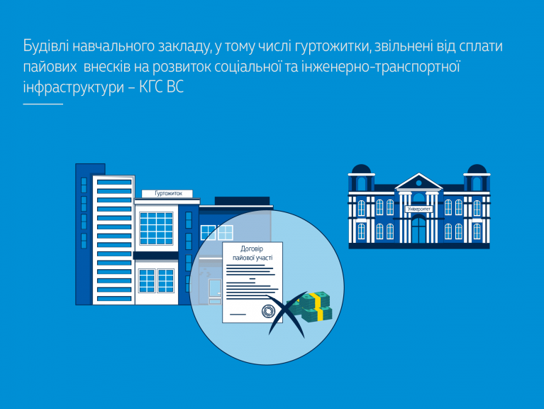 Суд касаційної інстанції зробив висновок, що Університет не зобов’язаний сплачувати пайову участь за споруджений гуртожиток, оскільки функціональне призначення об’єкта відповідає вимогам навчального закладу.