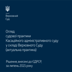 Пропонуємо ознайомитися з оглядом актуальної судової практики Касаційного адміністративного суду у складі Верховного Суду, в якому представлено рішення, внесені до ЄДРСР, за липень 2021 року.