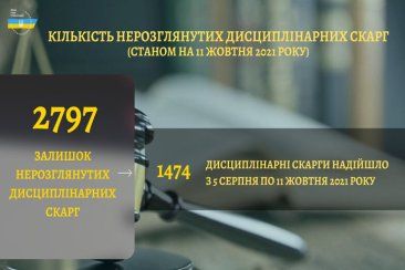Станом на 11 жовтня 2021 року загальний залишок нерозглянутих дисциплінарних скарг вже становить – 2797.