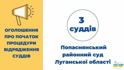 Вища рада правосуддя відповідно до рішення від 15 лютого 2022 року № 134/0/15-22 оголошує про початок процедури відрядження суддів до іншого суду того самого рівня і спеціалізації для здійснення правосуддя, а саме