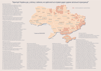 У Верховному Суді оновили карту територій України, де у зв’язку з війною не здійснюється правосуддя судами загальної юрисдикції. . Інформація станом на 06 квітня 2022 року.