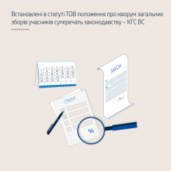 Проте колегія суддів підкреслила, що відсутність у цьому Законі прямої (буквальної) заборони встановлювати відсоток голосів учасників, за умови присутності яких загальні збори вважаються повноважними, не означає, що статут товариства, який містить положення про кворум, не суперечить законодавству.