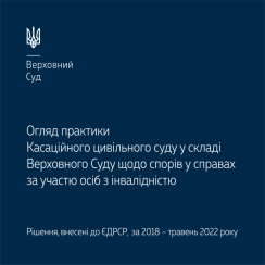 • у спорах за участю осіб з інвалідністю щодо спадкових правовідносин –визначаючи, чи є особа з інвалідністю з дитинства такою, яка має право на обов’язкову частку у спадковому майні, необхідно враховувати не сам лише факт установлення особі інвалідності уповноваженим державним органом, а момент її настання, оскільки чинне законодавство пов’язує набуття особою інвалідності з дитинства не з відповідним висновком такого компетентного органу, а зі стійким розладом функцій організму особи, що при взаємодії із зовнішнім середовищем може призводити до обмеження її життєдіяльності.