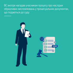 Верховний Суд зазначив, що ЄСПЛ, застосовуючи підпункт «а» п. 3 ст. 35 Конвенції, оголошує неприйнятною будь-яку індивідуальну заяву, подану згідно зі ст. 34, якщо вважає, що ця заява є зловживанням правом на її подання. Наприклад, ЄСПЛ констатує зловживання правом на подання заяви, коли заявник під час спілкування із Судом вживає образливі, погрозливі або провокативні висловлювання проти уряду-відповідача, його представника, органів влади держави-відповідача, проти ЄСПЛ, його суддів, Секретаріату або працівників.
