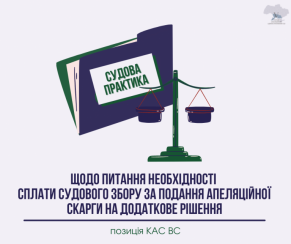 Верховний Суд зазначив, що при апеляційному та касаційному оскарженні додаткових судових рішень, ухвалених відповідно до пунктів 2-3 частини першої статті 252 КАС України, судовий збір не сплачується, оскільки розмір судового збору при поданні позову не залежить від того, який спосіб виконання судового рішення, у випадку задоволення позовної вимоги по суті спору, просить обрати позивач, або від вимоги щодо розміру та порядку розподілу судових витрат. Вказані питання не є самостійними позовними вимогами в розумінні КАС України та не входять до ціни позову, тому не підлягають оплаті окремо при зверненні до суду із позовом або відповідною заявою, передбаченою процесуальним законодавством, тобто не є об`єктом справляння судового збору.