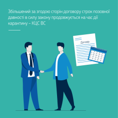 Виходячи із взаємозв’язку норм права, які були прийняті органом законодавчої влади в Україні під час дії карантину, введеного Урядом України у зв’язку з поширенням коронавірусної хвороби (COVID-19), цілей, з метою яких ці норми впроваджені, а також з метою недопущення безпідставного звуження прав учасників цивільних правовідносин, колегія суддів Верховного Суду дійшла висновку, що п. 12 Перехідних і прикінцевих положень ЦК України щодо продовження під час карантину строків загальної і спеціальної позовної давності, передбачених, зокрема, статтями 257, 258 цього Кодексу, підлягає застосуванню і в тому випадку, коли тривалість строку позовної давності, визначена законом, була збільшена за домовленістю сторін на підставі ст. 259 ЦК України.