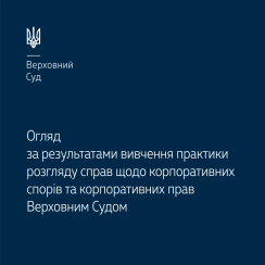 Судовою палатою для розгляду справ щодо корпоративних спорів, корпоративних прав та цінних паперів КГС ВС здійснено вивчення та узагальнення судової практики ВС з розгляду справ щодо корпоративних спорів та корпоративних прав у 2021 році з метою сприяння формуванню сталої судової практики з вирішення згаданих спорів. За результатами проведеного вивчення та узагальнення підготовлено огляд.