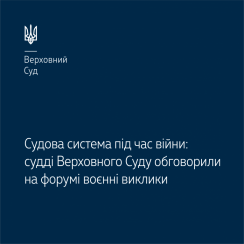 «Попри війну ми активно працюємо над реформуванням системи правосуддя. Триваюча російська агресія, кількість скоєних загарбниками злочинів, необхідність належного захисту наших військових та родин загиблих воїнів виводять на новий рівень дискусію щодо необхідності створення системи воєнних судів або запровадження спеціалізації суддів у судах загальної юрисдикції», – зазначив очільник ВС.