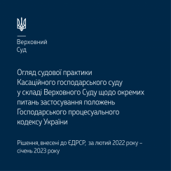 Пропонуємо до вашої уваги огляд судової практики Касаційного господарського суду у складі Верховного Суду щодо окремих питань застосування положень ГПК України, що виникають під час розгляду справ, за період із лютого 2022 року по січень 2023 року – .