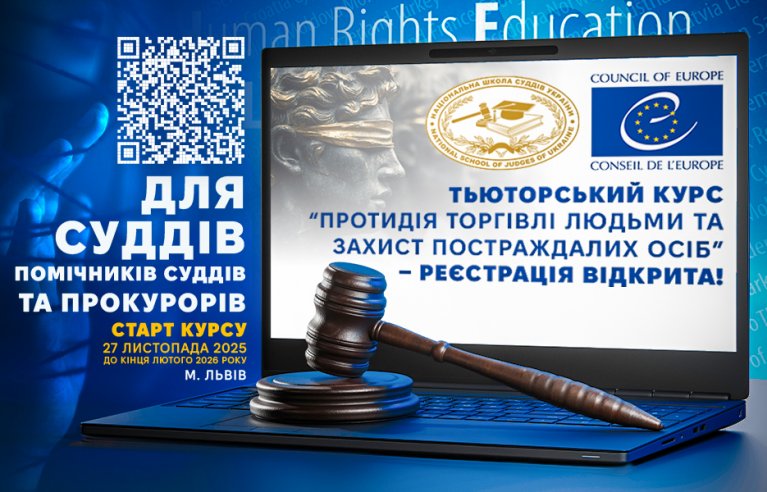 Національна школа суддів України запрошує суддів, помічників суддів та прокурорів взяти участь у тьюторському курсі Ради Європи HELP "Протидія торгівлі людьми та захист постраждалих осіб". Старт курсу 27 листопада 2025 року, м. Львів (очний формат). Тривалість – до кінця лютого 2026 року. Організаторами курсу є Проєкт Ради Європи "HELP для України, в тому числі під час війни" (Фаза 2), Національна школа суддів України та Тренінговий центр прокурорів України. Цей курс створений для фахівців у галузі права, працівників правоохоронних органів, державних службовців та представників неурядових організацій, які працюють із особами, що постраждали від торгівлі людьми. Учасники навчаться: – ідентифікувати постраждалих осіб; – правильно кваліфікувати злочини, пов’язані з ...